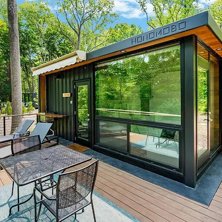 De 0-slaapkamer Modern Riverside Cabin W Hot Tub Fire Pit Kayaks Rileyville ligt op circa 3 km van Milford Gap en nodigt gasten uit om te genieten van een patio.
